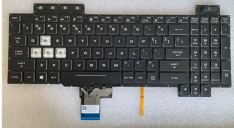 Với hệ thống đèn LED trắng sáng rõ, giúp người dùng dễ dàng thao tác trong điều kiện ánh sáng yếu, đặc biệt phù hợp cho các dòng Asus TUF Gaming FX series.
